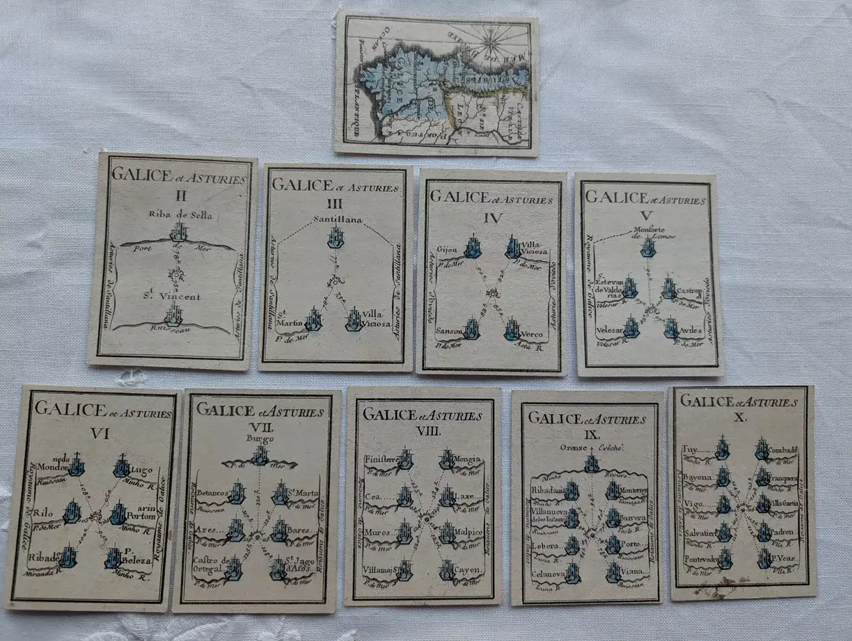 Der Fürst von Conti des Königreichs Frankreich in den 1940er Jahren des 18. Jahrhunderts Galus Designer Lus Nicolas Delaistre de Poilly, ein neues Projekt mit der Idee der Franzosen, die Geographie aus der ganzen Welt durch das Spiel lernen... als aktuelles Trivial. Das Spiel, in dem die Croquis von den Haupthäfen, in diesem Fall von den Gewässern von Cantabrian und dem Atlantik Galicien, notoriety; sie machen uns denken, dass es das erste historische Dokument auf internationaler Ebene als Spiel... und auch in denen verschiedene spanische Gebiete besondere Relevanz haben, wie in diesem Fall Galicien, durch das Alte Königreich betrachtet die älteste von denen, die auf unserem alten Kontinent existierten oder existieren.