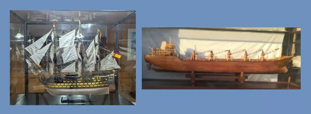San Ana und ein Baskischer Kaufmann. Das Modell des Segelbootes wurde von Hand von einem großen maquetista für mehrere Jahre gemacht. Es hat eine beträchtliche Größe unter Berücksichtigung der Metacrylat-Harnstoff, die speziell zum Schutz des Schiffes gemacht wurde. In Bezug auf das Bootsmodell, das komplett aus Holz von Euskalduna 75 Jahrestag gebaut wurde, für eine Marineausstellung in Galizien. Ihre Maße 205 x 68 x 54 cm. Ihre Verkaufspreise, das Segelboot 8.000 Euro und der Händler 6.500 Euro.