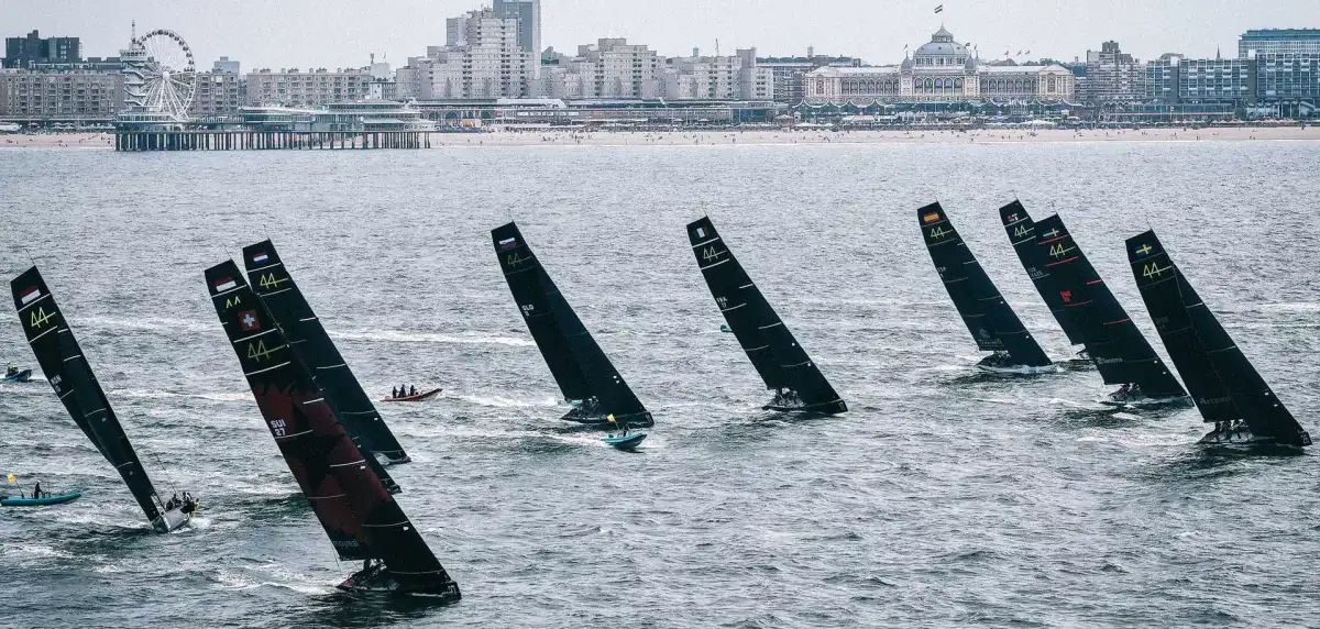 The Lanzarote Calero Sailing Team faces in Scheveningen the 44Cup World Cup as the only ship with Spanish flag in a fleet of twelve international teams. A quote marked by the demand of the Dutch race field, where the current, the wind roles and the sudden weather variations have tested the entire fleet in a day of opening with collisions, incidents and winds that reached over 35 knots.
