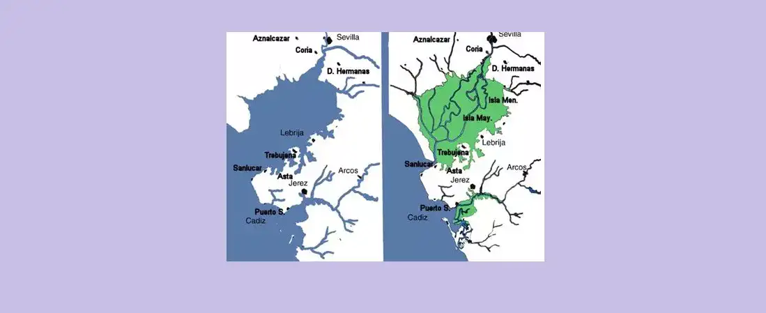 El papel que históricamente ha desempeñado el Guadalquivir ha sido tan importante que han sido muy numerosas las investigaciones llevadas a cabo en torno a las transformaciones sufridas por el cauce fluvial. Éstas han señalado para el entorno de la comarca de La Ribera y Las Marismas del Guadalquivir, la existencia de un extenso golfo marino en la desembocadura del Guadalquivir, que además es el origen de la comarca marismeña. Estos datos que ya figuran en las fuentes grecolatinas, ha sido confirmados por análisis geológicos.
