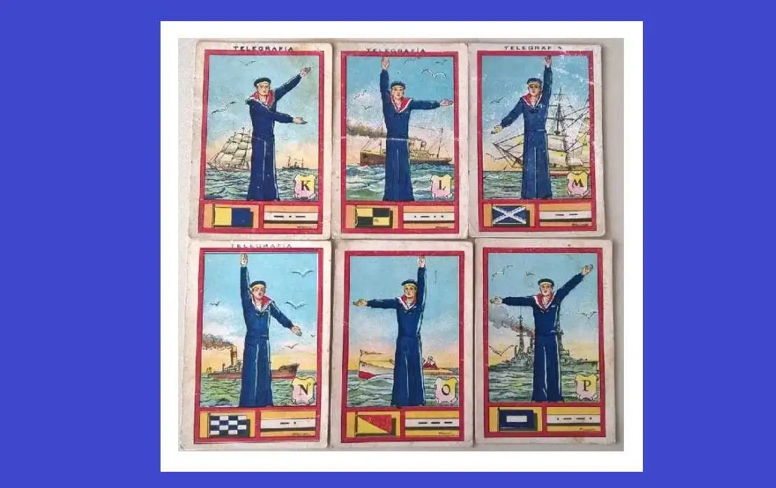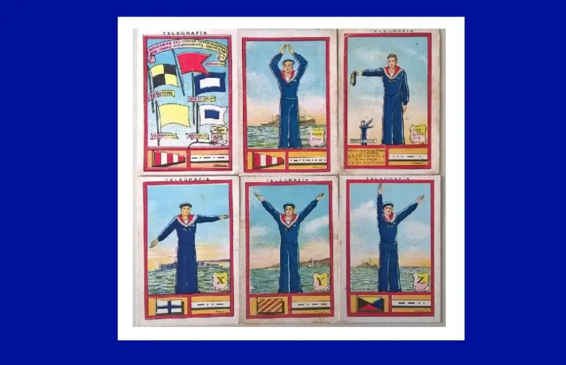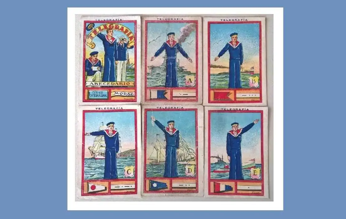 Editó una colección de 30 cromos, dedicada al Código Internacional de Señales bajo el nombre de «Telegrafía» y la sugerencia del «Código Internacional Morse», de una gran belleza obra del genial Albert Mestre. Los cromos son de gran tamaño (10 x 6,50 cm.) y están impresos en cartón. ¡Increíbles!,…, por cierto para no depender en exceso de la tecnología cuando naveguemos, no está de menos dominar este lenguaje, que no precisa de tecnología punta,…