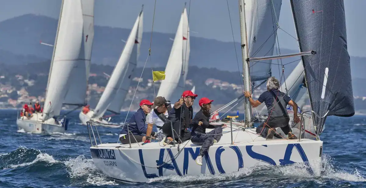 Pasaban ocho minutos de las once de la mañana cuando diez embarcaciones (1 británica, 2 portuguesas y 7 españolas) tomaron la salida de la regata del Carrumeiro Chico en la zona de Carallones, entre cabo Silleiro y las Cíes, con un viento del norte que se movía entre los 8 y los 10 nudos y apenas mar de fondo. Todas optaron por el trazado exterior a Cíes y navegaron bastante agrupadas en los primeros compases. Durante las primeras horas, el protagonismo indiscutible fue para el Corsario Thunder, un TP52 patroneado por el arousano Jorge Durán, que lideró la prueba con autoridad hasta que, en torno a la una de la tarde, rompió su vela mayor y tuvo que retirarse, perdiendo así toda opción de victoria. Su abandono reconfiguró los favoritos y dejó vía libre al Yess Too del portugués Rui Ramada y al Sara 3.0 de Rafael Blanco, ambos del Monte Real Club de Yates, que se colocaron en cabeza protagonizando un interesante mano a mano durante un tramo bastante prolongado.