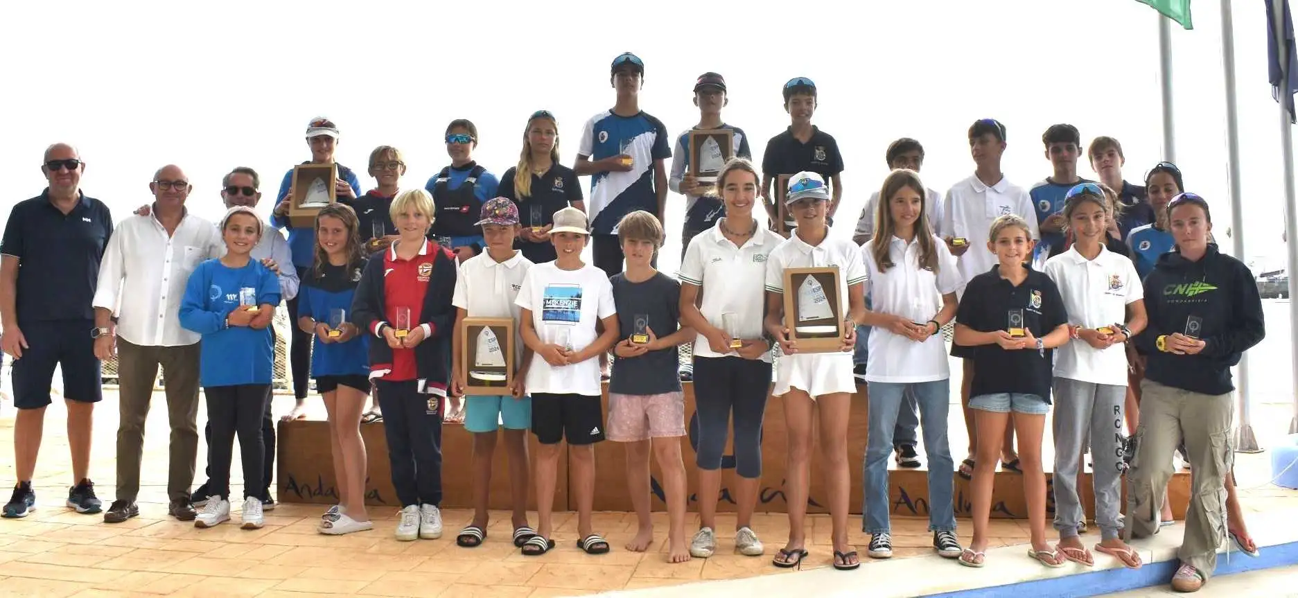 L'enfant andalou de la mer, Petra Murube et José de Linares, ainsi que les canaris Manuel Florido, Martina Quintana et Pablo Medina partagent les titres du neuvième Trophée de l'Hispanité de l'Optimiste... le calme atteint les eaux Gaditan et résolve la course avec un dernier jour dans la baie de Cadiz.